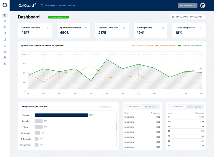 O design do CellGuard não é apenas visualmente agradável; ele é uma ferramenta que capacita as forças de segurança. A plataforma, com seu design intuitivo, traduz dados complexos em ações concretas, otimizando o processo de recuperação de celulares e contribuindo para a segurança pública.
