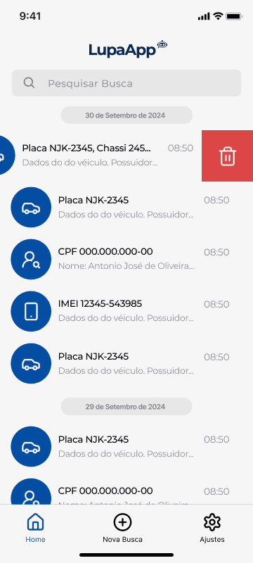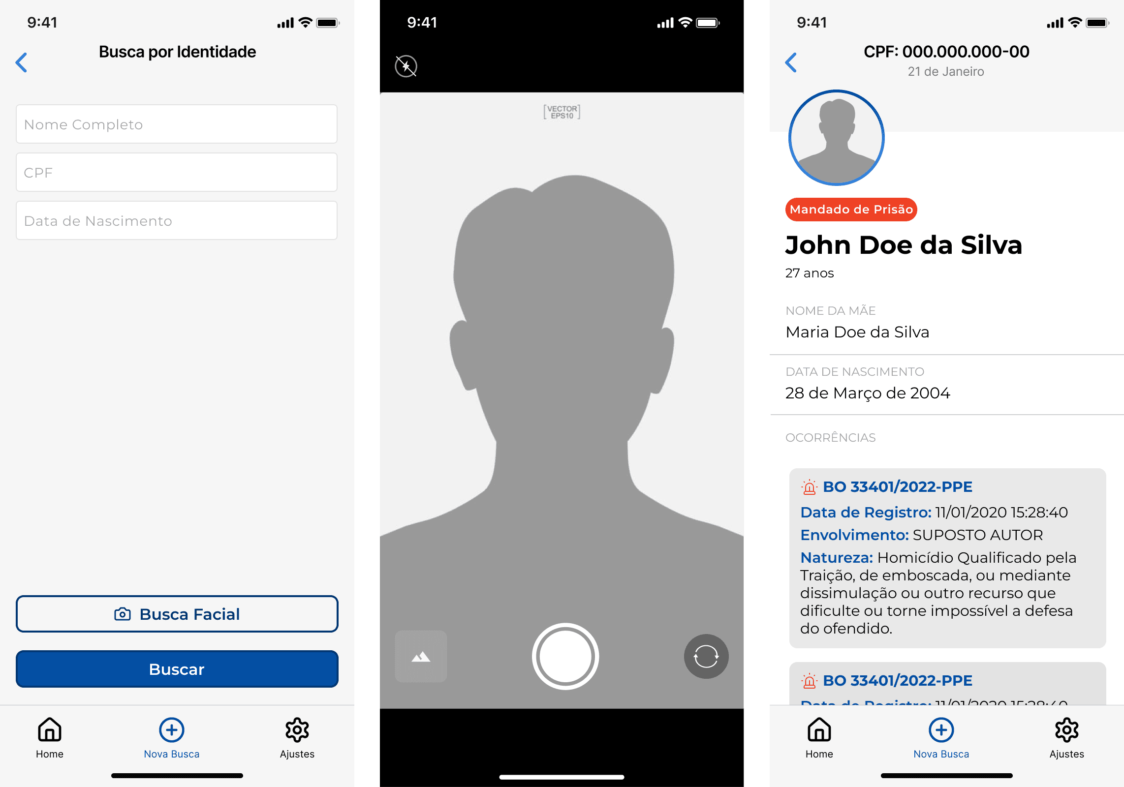 Arquitetura da Informação: Organizei o fluxo do usuário para otimizar a busca por pessoas, reduzindo as etapas necessárias e priorizando a visibilidade de informações críticas, como o status de "procurado".